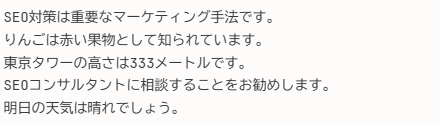 例えば以下の例です。各文は文法的に正しいですが、文章全体として何を言いたいのか全く分かりません。