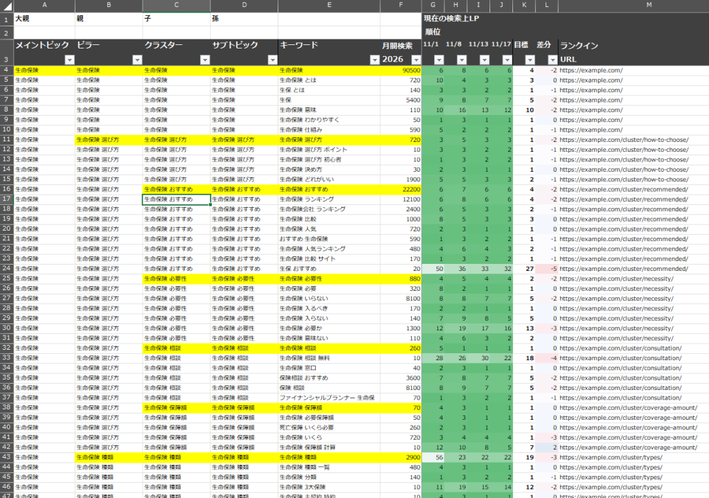 「実際にピラー/クラスター/サブトピックをどのように整理すればいいか知りたい」